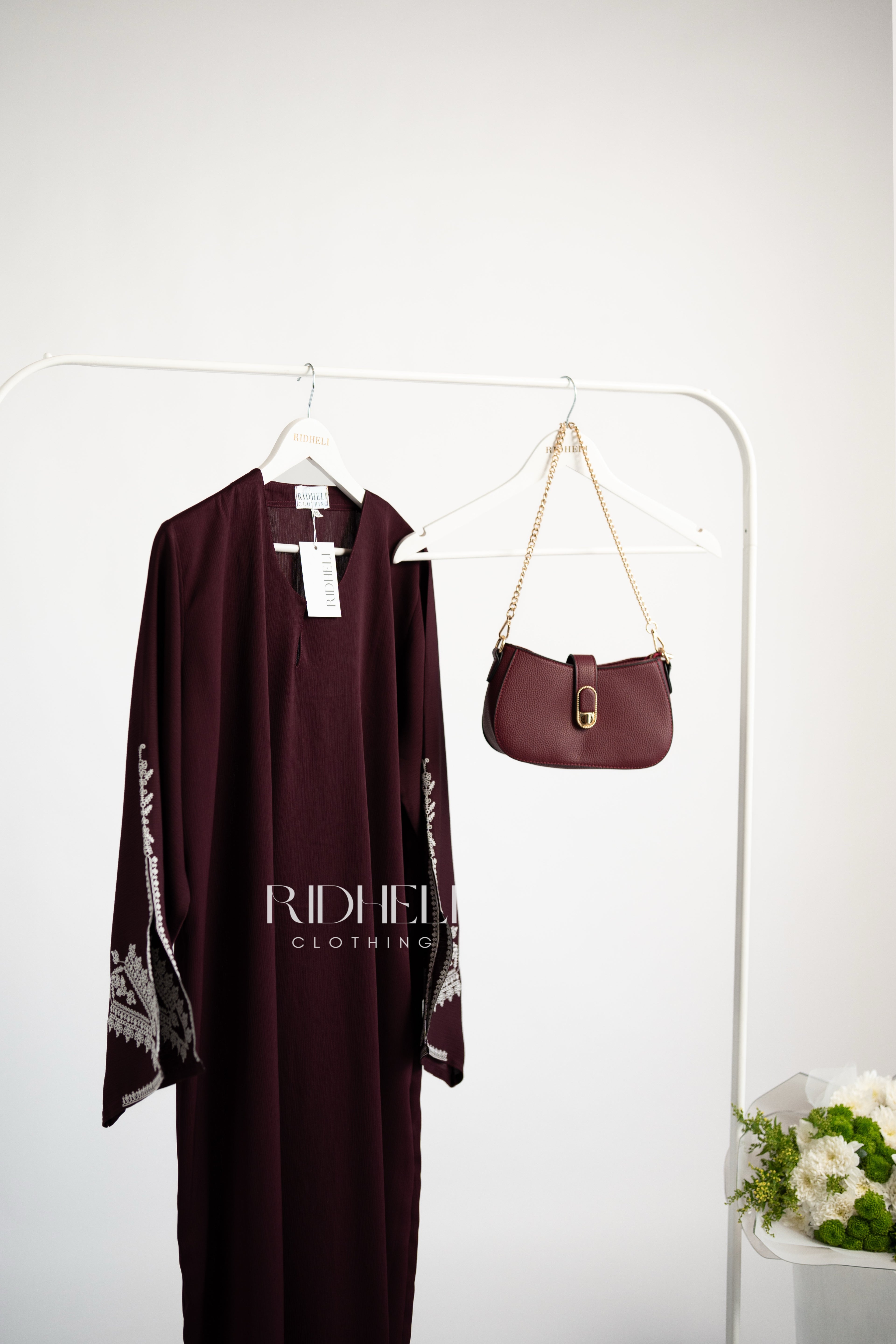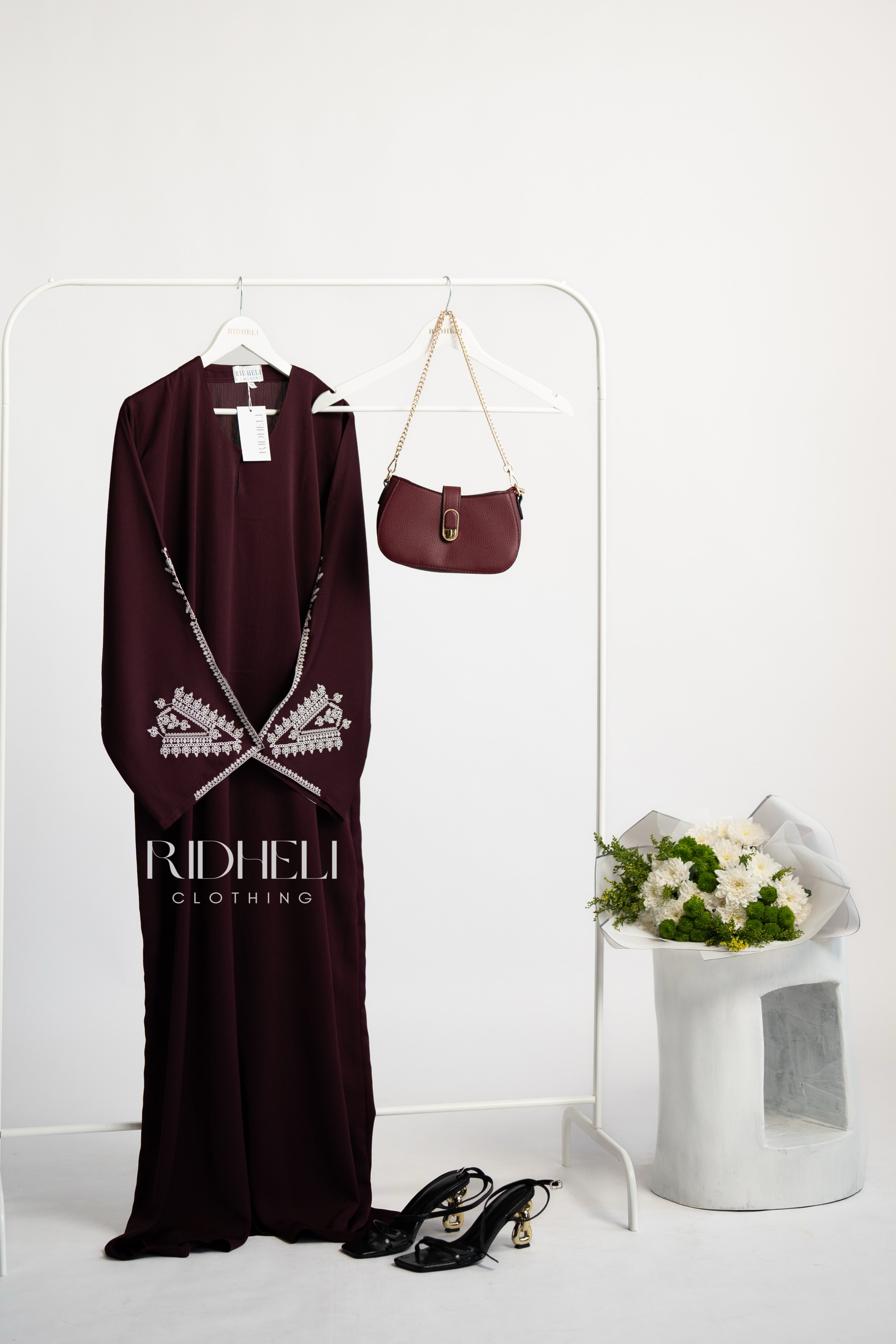HUDA DARK MAROON EMBROIDERY ABAYA