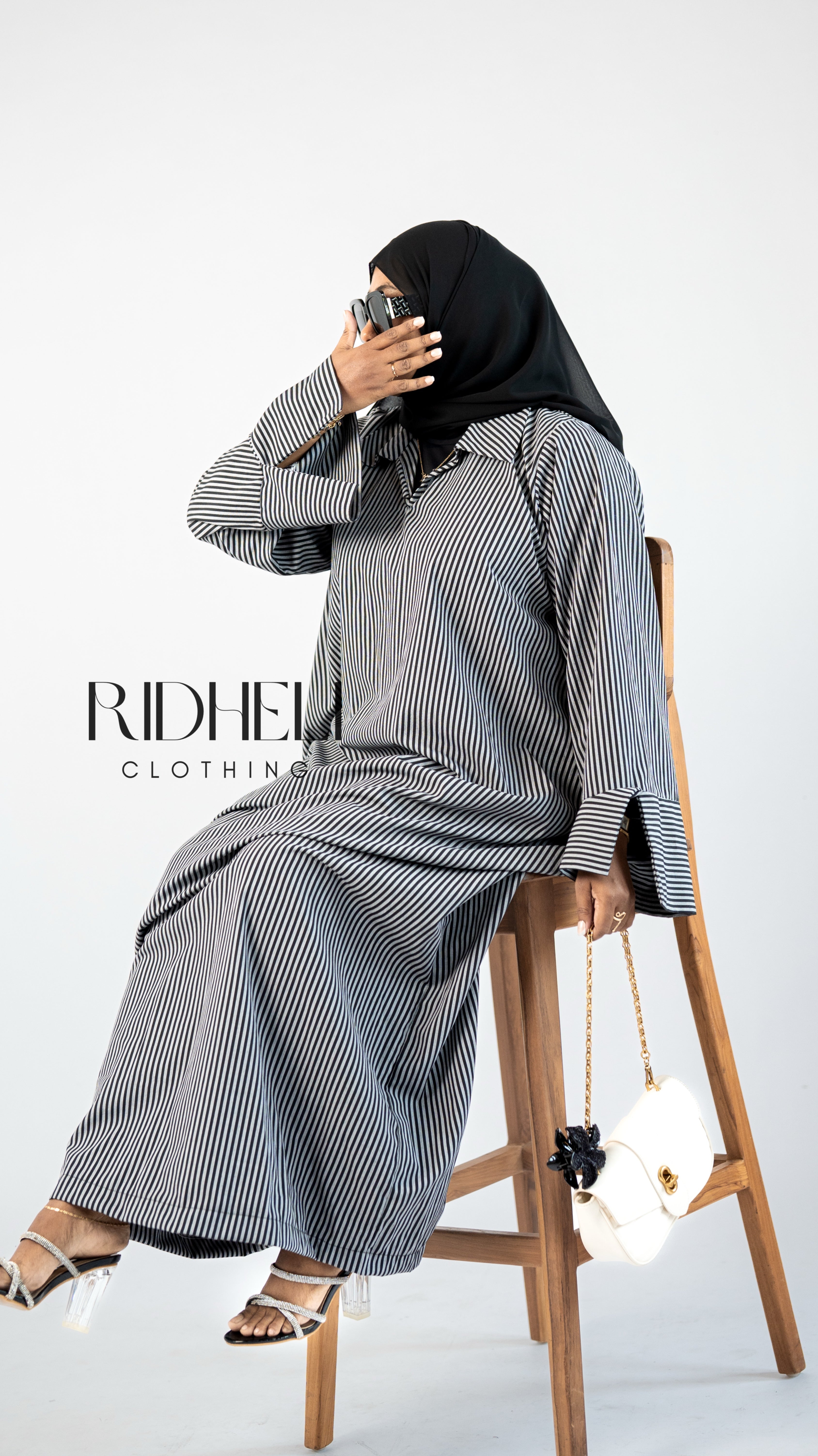 BLACK & WHITE STRIPE ABAYA